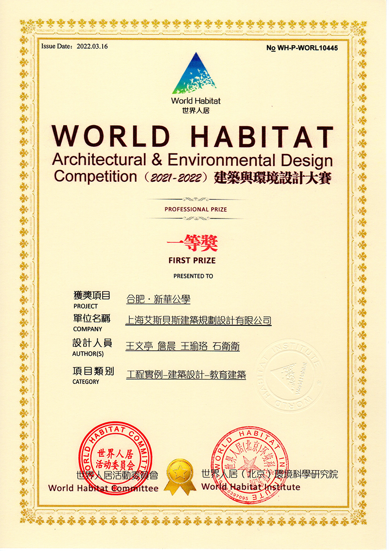 近日,WORLD HABITAT(2021-2022)建筑與環境設計大賽(Berlin Design Awards)于世界人居官方網站公布了獲獎名單,新華公學校園建筑一舉斬獲2021-2022建筑與環境設計大賽專業組」一等獎。