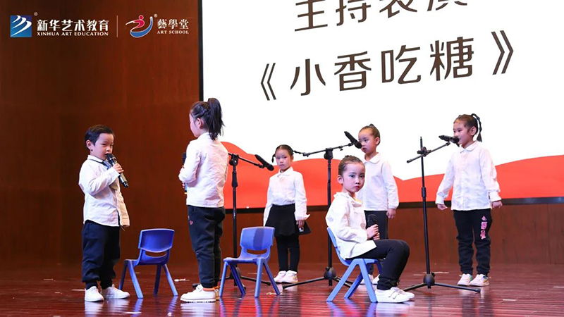 作為一站式藝術教育平臺,藝學堂一直將青少兒全面發(fā)展放在重中之重,其開設的表演主持課程,通過朗誦、故事、相聲等形式,學習韻律、節(jié)奏、語音、語氣變化來表現(xiàn)不同情緒,并加入適當?shù)闹w語言做輔助表演,鍛煉孩子在公眾場合自我展示的信心和表現(xiàn)力,提高其語言表達能力。