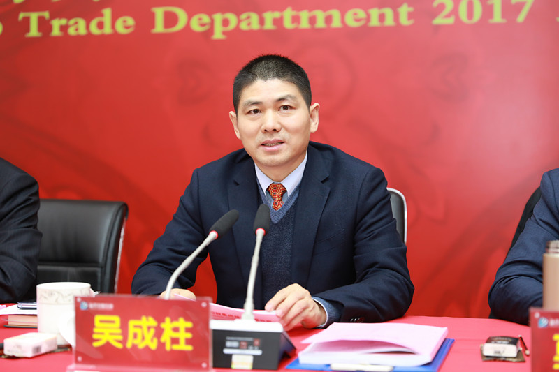 會議最后,新華控股集團吳成柱董事長發(fā)表重要工作講話,對全體員工在2017年奮力發(fā)揚艱苦奮斗、攻堅克難、敢打硬戰(zhàn)、能打勝戰(zhàn)、勇創(chuàng)佳績的精神給予了充分的肯定。在綜合分析了國家經濟形勢和行業(yè)態(tài)勢后,董事長要求商貿事業(yè)部在新的一年,要認清形勢、順應大勢、把握機遇、借力發(fā)展,要進一步加強人才隊伍建設,培養(yǎng)造就更多敢擔當的奮斗者、干成事的同路人;要進一步增強發(fā)展愿力,創(chuàng)新商業(yè)模式,鑄造優(yōu)秀品牌;要進一步完善激勵機制,推進同心共享,打造事業(yè)平臺;要進一步優(yōu)化運營管理,提高管控水平,健全標準規(guī)范;要進一步弘揚企業(yè)文化,根植新華傳統(tǒng),傳承優(yōu)良作風,為實現商貿事業(yè)更加平穩(wěn)健康發(fā)展而不懈奮斗!