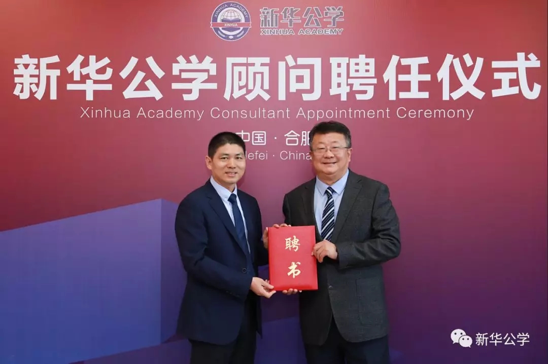 聘任儀式上,吳成柱董事長親自為陳棟先生頒發(fā)聘書,并代表新華控股集團(tuán)對他的加入表示歡迎。懷揣多年教育智慧的陳棟先生,早已是安徽省教育界的領(lǐng)軍人物,桃李滿天下,此次聘任對于新華公學(xué)來說可謂是如虎添翼。