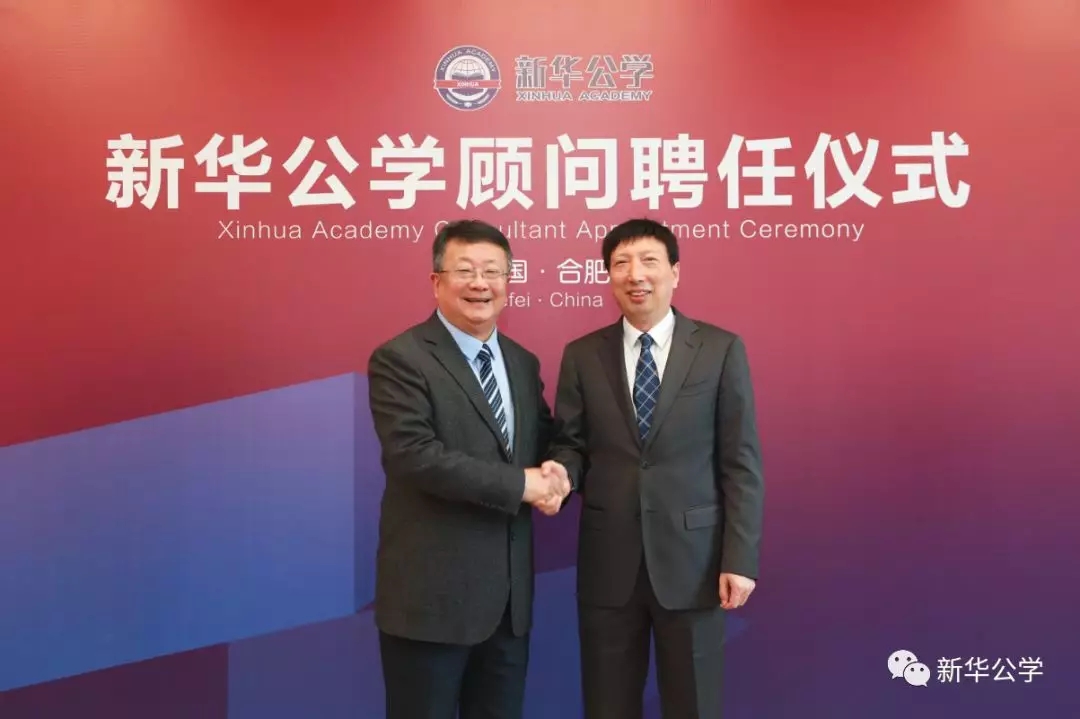 4月30日上午,新華公學(xué)總顧問聘任儀式在校會議大廳隆重舉行。新華公學(xué)正式聘任安徽省人民政府參事、合肥一中原校長陳棟先生為新華公學(xué)總顧問。新華控股集團(tuán)董事長吳成柱、新華控股集團(tuán)執(zhí)行董事白寧、新華控股集團(tuán)副總裁董超、新華公學(xué)總校長李建民等領(lǐng)導(dǎo)出席儀式。