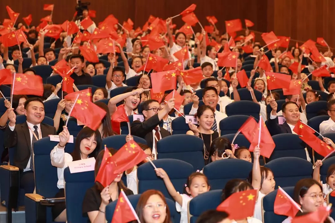 這個夜晚,激越、奮進的樂音,映襯飄揚的五星紅旗,將全場帶入了喜慶祥和的"國慶時間"。