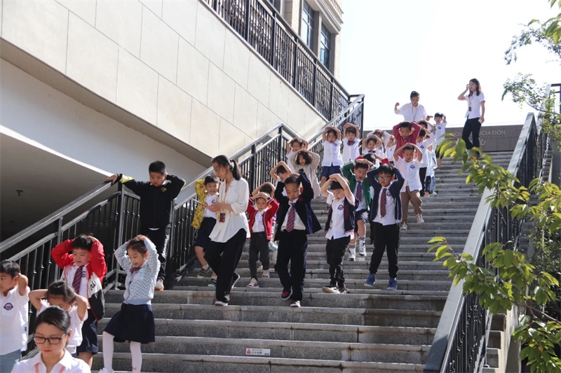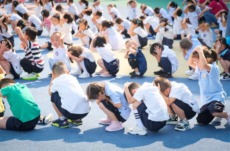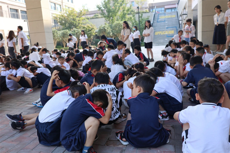 之后在凄厲的空襲警報聲中,大家立即抱頭蹲下或快速就近躲避,以防傷害。解除警報悠悠響起后,班級教師按照預(yù)定位置集中整隊,清點學(xué)生人數(shù),匯報疏散情況,演練順利完成。