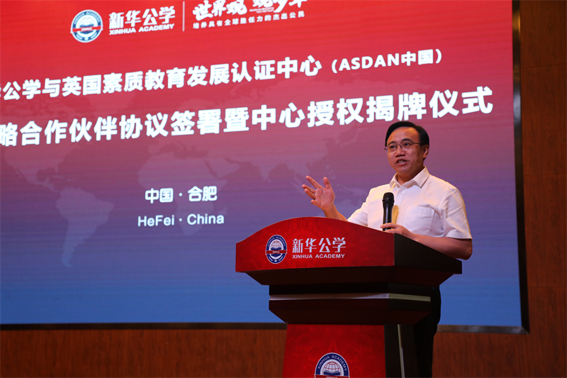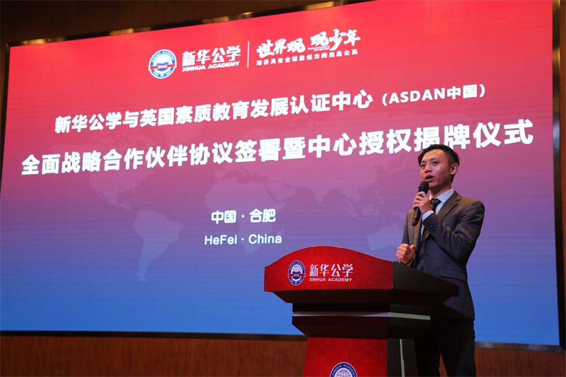 熱烈祝賀新華公學正式與英國素質教育認證發展中心(中國區)簽署戰略合作并榮獲授權916日,ASDAN中國副總裁兼中西區總監譚鳳先生蒞臨我校,出席此次簽約授牌儀式。