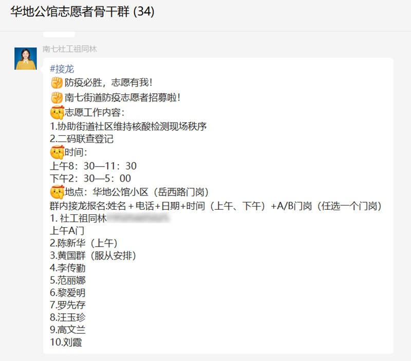 在黨建引領下,華地好生活集團全國各社區項目,一股股紅色力量,構筑起疫情防控的“紅色防線”。以華地公館為例,其小區參與防疫工作的好生活志愿者高達30余人。每日,華地公館物業服務中心和街道社居委相互配合,共同規劃志愿防疫內容和執勤時間,在“好生活志愿者溝通群”發布防疫志愿者報名公告,保證隔天園區防疫管控良好運轉。