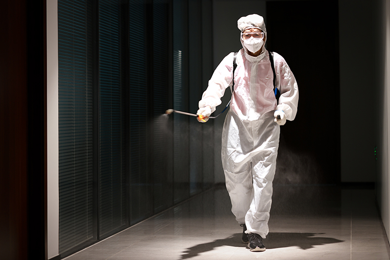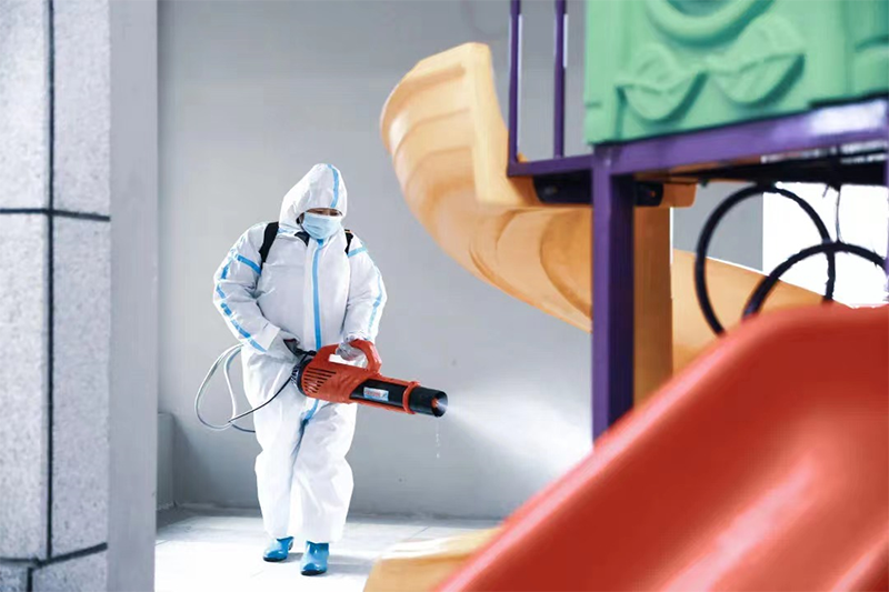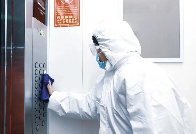 當(dāng)白天的喧囂褪去,夜幕降臨時,他們穿著防護(hù)服的身影總是隨處可見,對寫字樓、園區(qū)全部棟樓的公共區(qū)域,進(jìn)行反復(fù)的消殺并記錄。或許,大白的口罩和防護(hù)服遮擋了他們的容顏,但是他們?yōu)闃I(yè)主的心卻在此刻熠熠生輝。