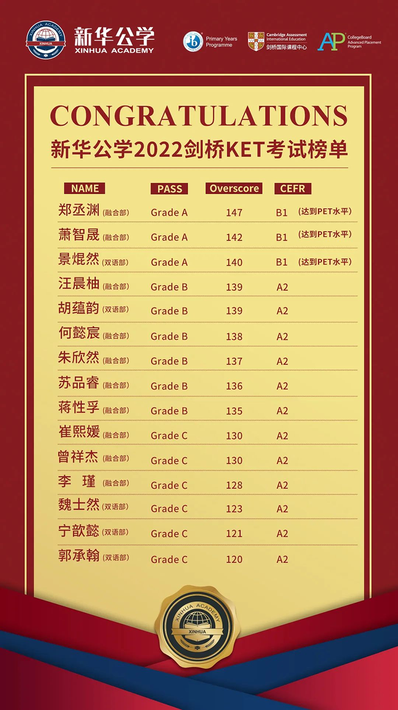 2022劍橋KET考試榜單出爐,我校學子喜獲佳績!