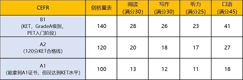 下面一圖為大家介紹劍橋考試每個等級的水平對標