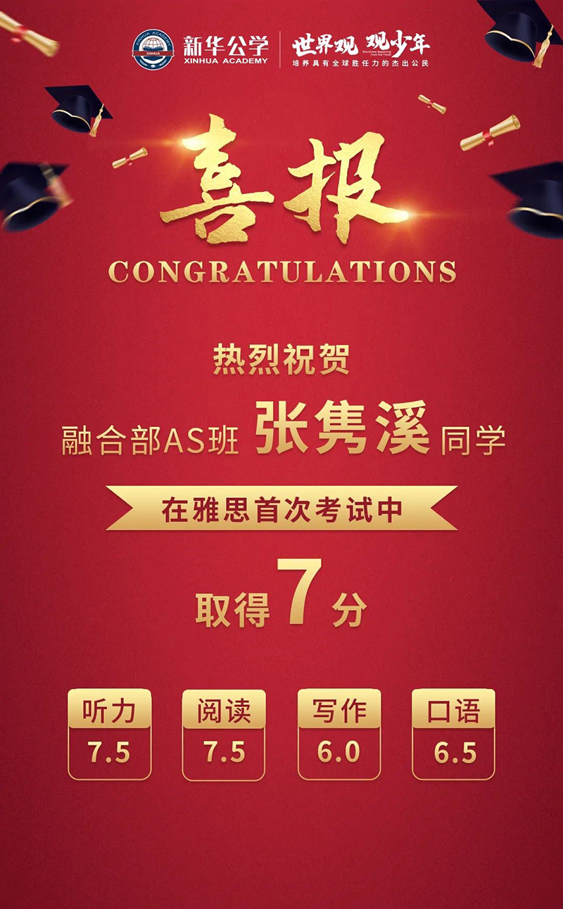 最后,讓我們在祝賀張雋溪同學的同時,也希望更多的同學在自己期望的道路上收獲豐碩的果實。