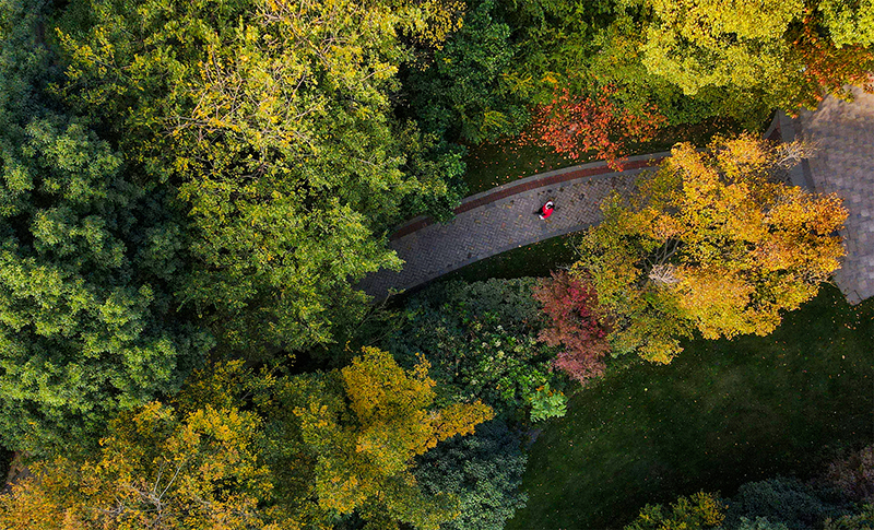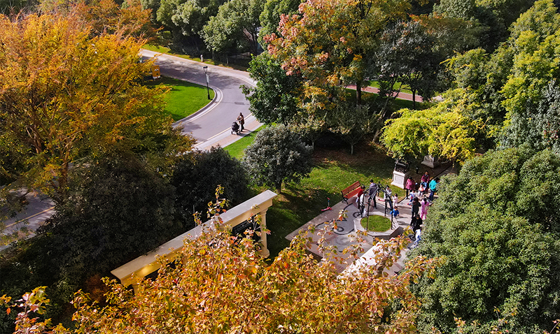 黃葉如金,沉醉在冬景的人們聚在繽紛林蔭下,或漫步賞景,或歡笑暢聊,總有享不完的樂趣。