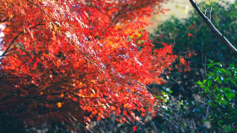 “霜染鴉楓迎日醉”,和煦陽光灑滿楓葉,如生命之火輕盈躍動,以經霜不改蓬勃的風姿溫暖過路歸人。
