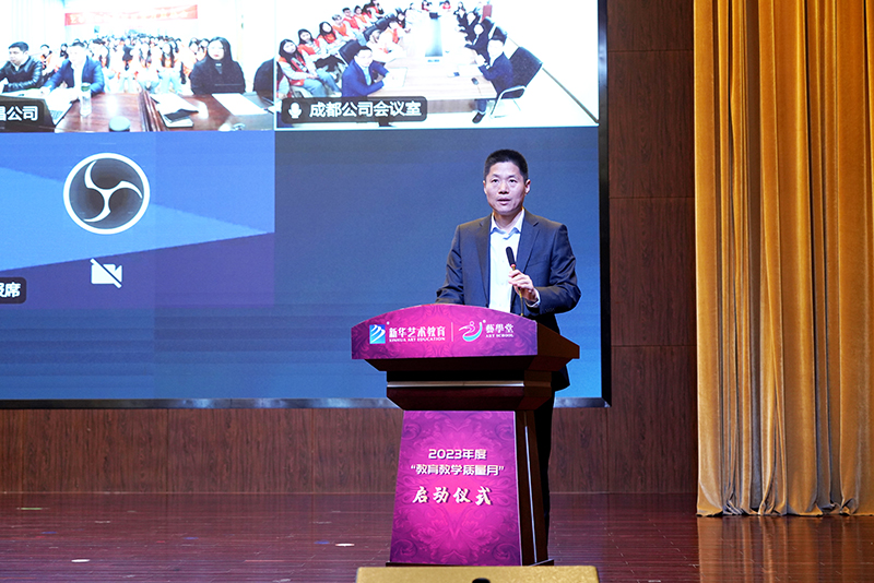 為進(jìn)一步提升各項(xiàng)目教育教學(xué)質(zhì)量,推動(dòng)教學(xué)理念、方法的改革創(chuàng)新。4月6日,藝學(xué)堂“2023年教育教學(xué)質(zhì)量月”正式啟動(dòng)。集團(tuán)分管領(lǐng)導(dǎo)董總、藝學(xué)堂領(lǐng)導(dǎo)和合肥區(qū)域全體教師到場(chǎng)參會(huì),鄭州、南昌、成都區(qū)域領(lǐng)導(dǎo)和教師線上參會(huì)。
