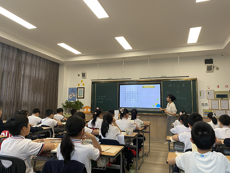 李亞芬老師帶來《確定位置》。李老師從學(xué)生生活實(shí)際入手,采用學(xué)生自主探究、合作交流為主,教師點(diǎn)撥引導(dǎo)為輔的策略,讓學(xué)生在生活實(shí)例中感知,在積極思辨中發(fā)現(xiàn),在具體運(yùn)用中理解學(xué)習(xí)數(shù)對(duì)的必要性。