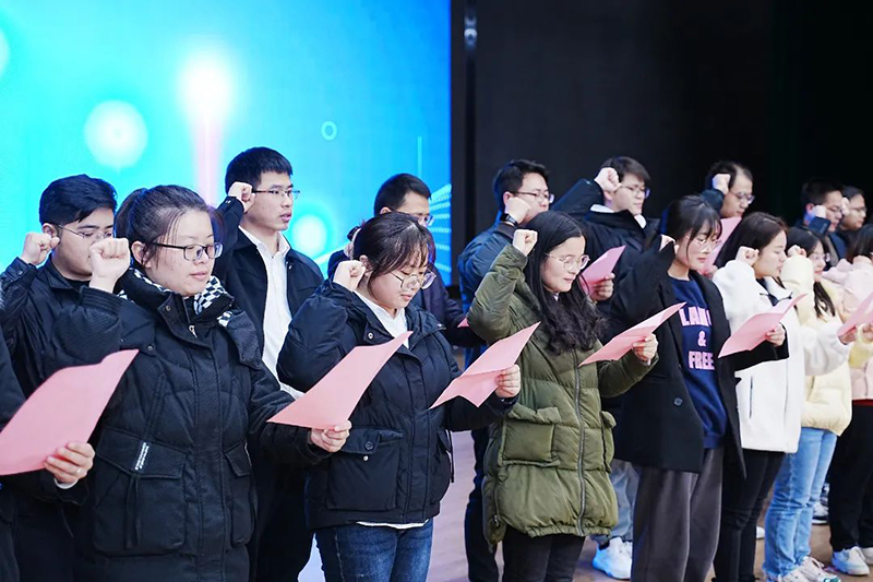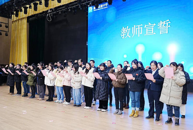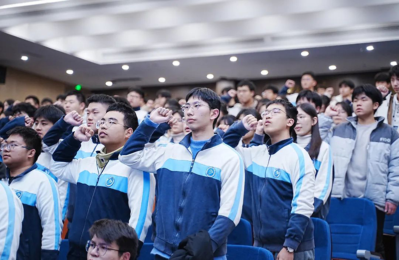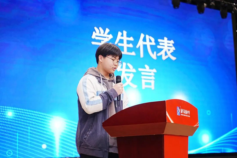 接下來由鮑李合毅同學(xué)帶領(lǐng)全體學(xué)生宣誓,他們豪情萬丈,壯志凌云,鏗鏘的宣誓響徹大廳,氣壯山河的誓言似乎已經(jīng)在預(yù)示著他們學(xué)考的勝利。