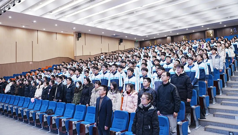 伴隨著莊嚴(yán)的國歌,本次大會拉開序幕,全體師生齊唱國歌,莊重而肅穆。