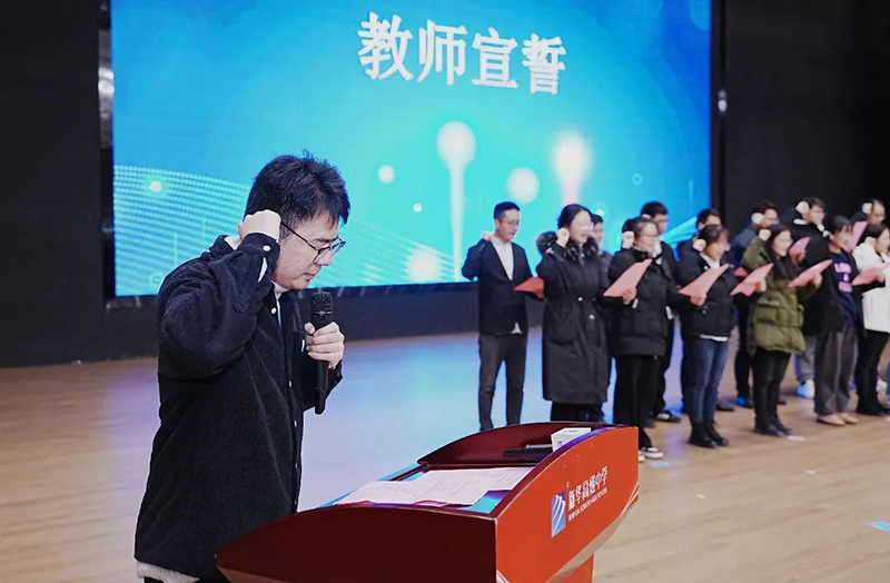 接下來金波老師帶領(lǐng)全體教師宣誓,他們甘做人梯,培育棟梁,錚錚誓言飽含著每一位教師的職責(zé)和使命,他們用真誠告訴孩子們,只管勇往直前,沖鋒陷陣,放心,老師永遠是你們最堅強的后盾!