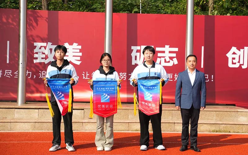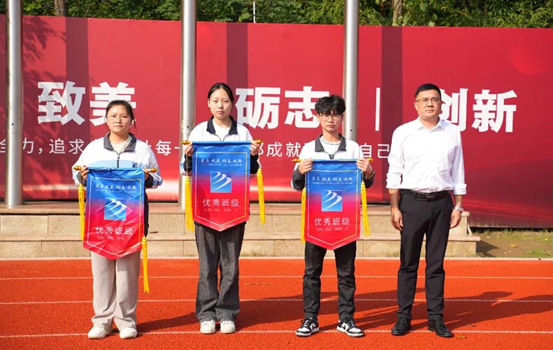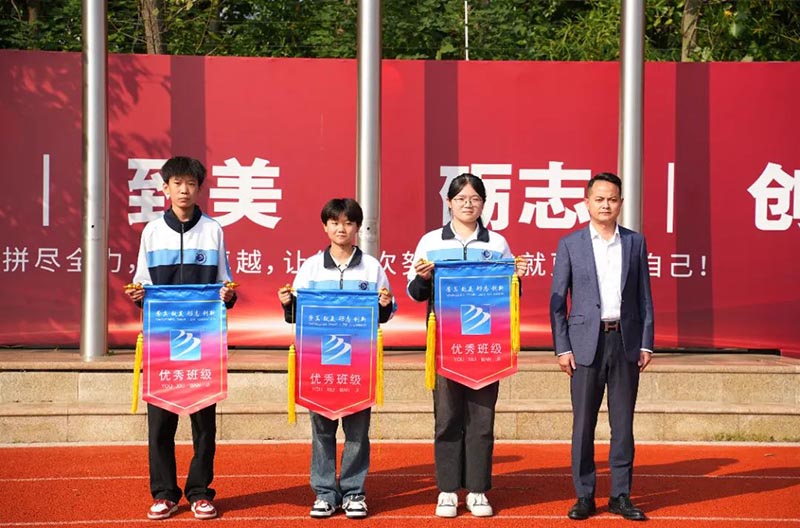之后,由副校長陳俊、吳東、方明生分別為高中三個年級的優(yōu)秀班級頒發(fā)錦旗。通過流動紅旗的量化評比,讓學(xué)生自覺遵守日常行為規(guī)范,提高文明素養(yǎng),養(yǎng)成良好的行為習(xí)慣,從而形成良好的班風(fēng)、校風(fēng)。同時也號召所有班級向獲獎班級學(xué)習(xí),并積極行動起來,規(guī)范自己的行為,重視環(huán)境衛(wèi)生、校紀(jì)校規(guī),積極為建設(shè)文明班級、優(yōu)秀校園貢獻(xiàn)自己的力量。